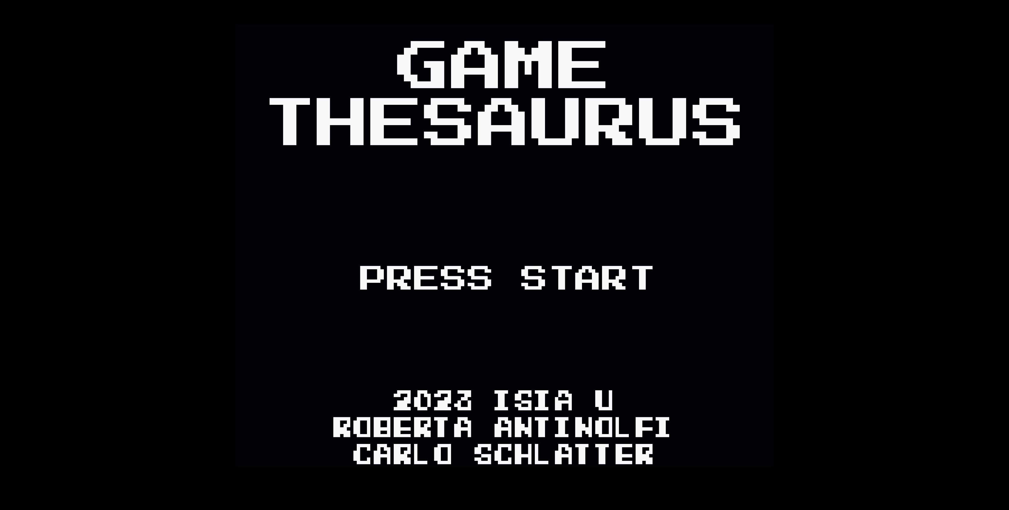 The game thesaurus consists of an “encyclopedia” of video game texts and dialogues and it is browsable both as a website, as a retro video game, and as a printed version: each user can create a collection of their own favorite texts and print a brochure or a book to serve as a compendium of the project.